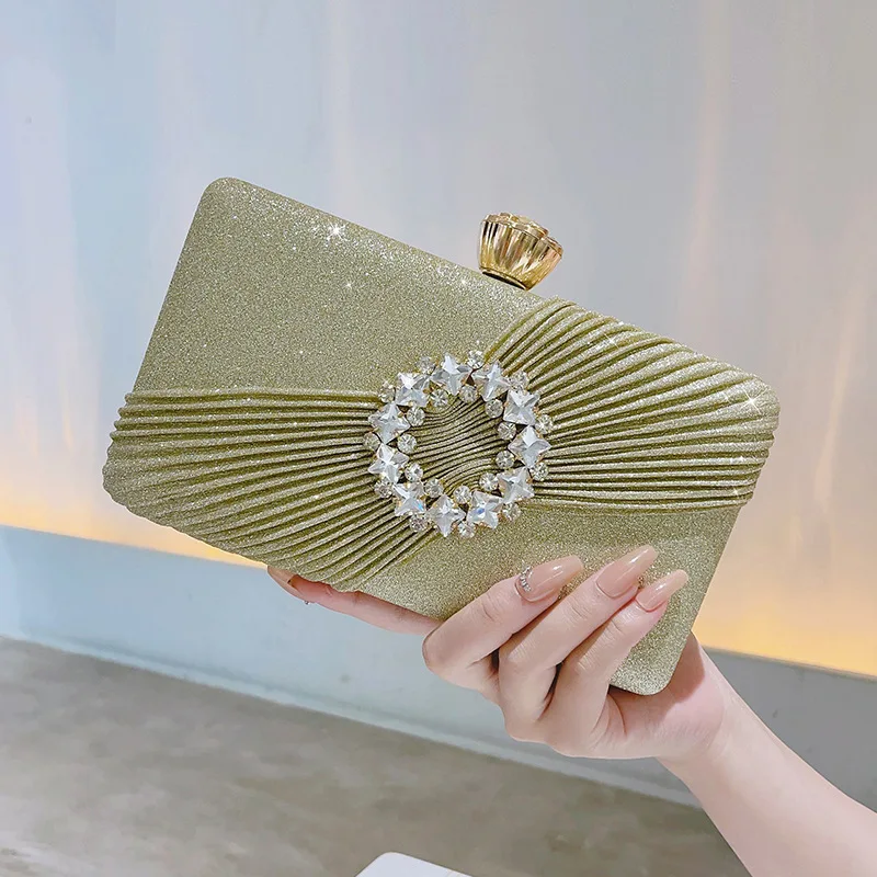 2025 New Ladies Luxury Evening Bags Retro Fashion Black Gold Diamond Flower Small Clutches For Women Prom Party Shoulder Bags