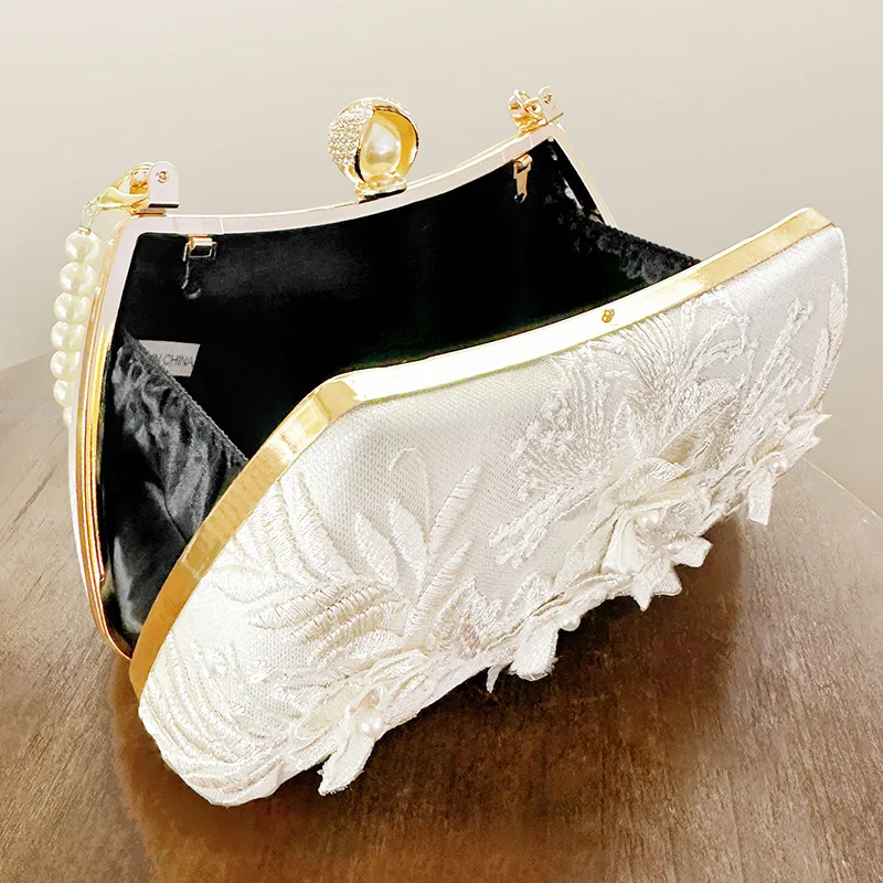 Chinese Style Embroidery Flower Dinner Evening Bags For Women Retro Fine Beige Pink Red Handbags Prom Party Clutch Shoulder Bag