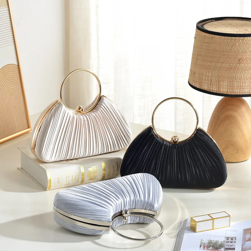 Be the first to review “Classic Simple Silk Round Circle Handle Handbag For Women Retro Gold Silver Black Elegant Designer Wedding Bag Party Evening Bag”