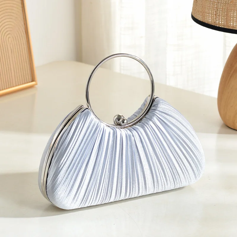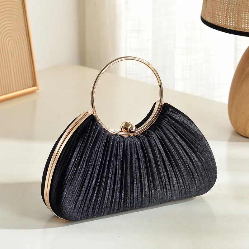 High-concerned chemical: None Place Of Origin: Guangdong Province Place Of Origin: Guangdong Province Model Number: Th-B2412 Exterior: None Hardness: HARD Pattern Type: Solid Style: Fashion Lining Material: POLYESTER Main Material: Silk Shape: Hobos Origin: Mainland China CN: Guangdong Occasion: Party Gender: Women Classic Simple Silk Round Circle Handle Handbag For Women Retro Gold Silver Black Elegant Designer Wedding Bag Party Evening Bag