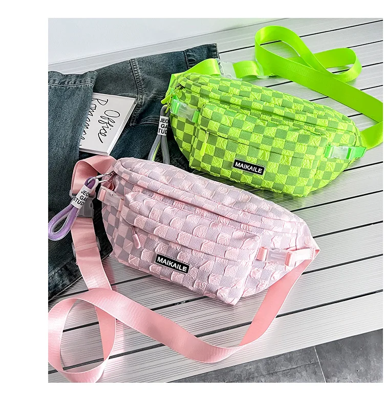 Korean Harajuku Plaid Shoulder Bag For Women Phone Chest Bag Fashion Causal Sport Waist Bag Simple Versatile Crossbody Chest Bag