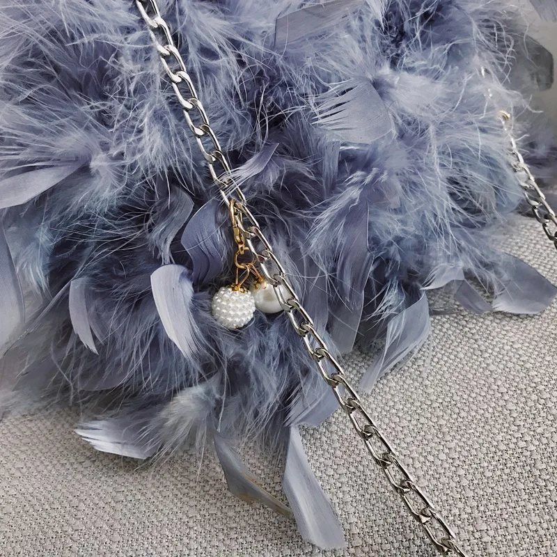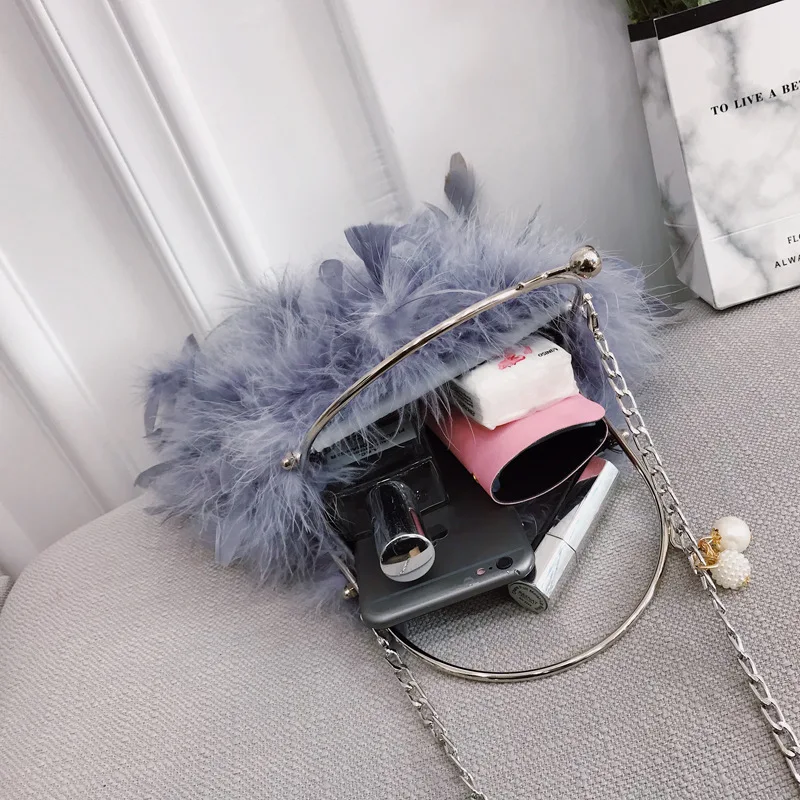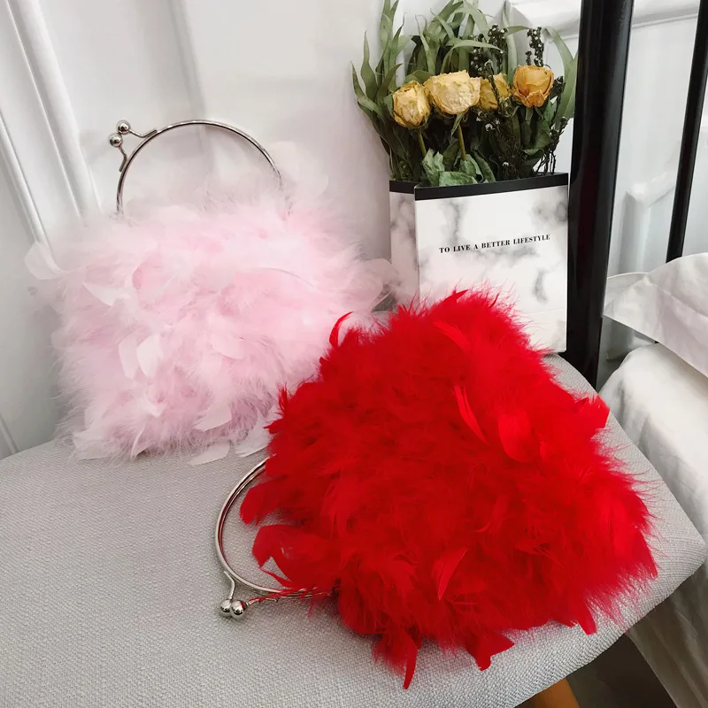 Korean Soft Feather Ring Evening Handbag Women Fashion Shoulder Chain Bag Small Purse And Handbags Pink Red Female Bolso Mujer
