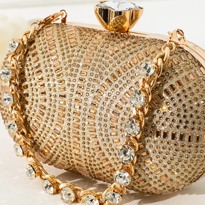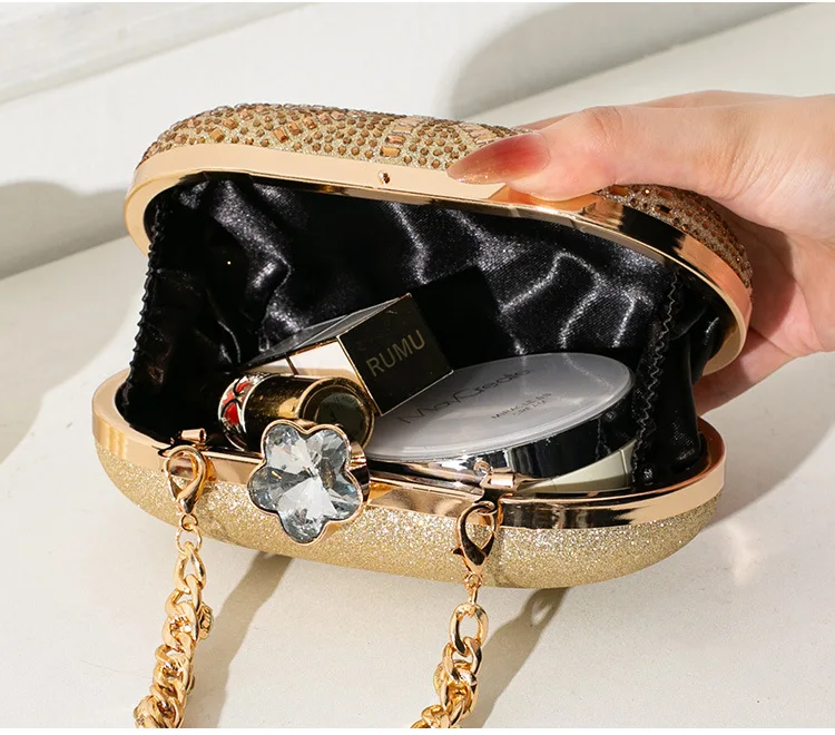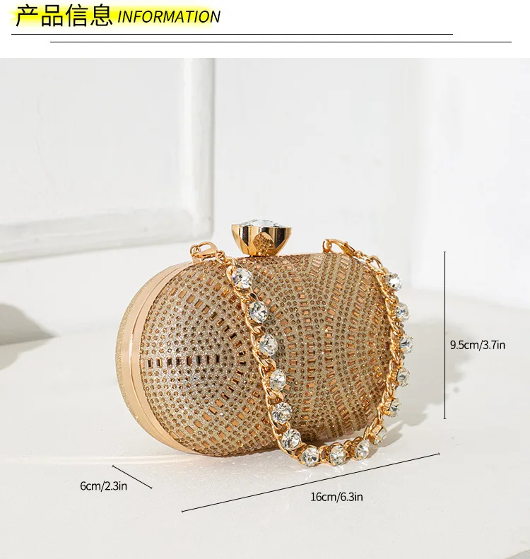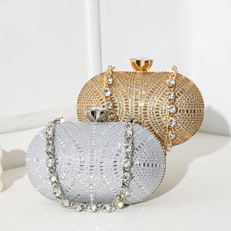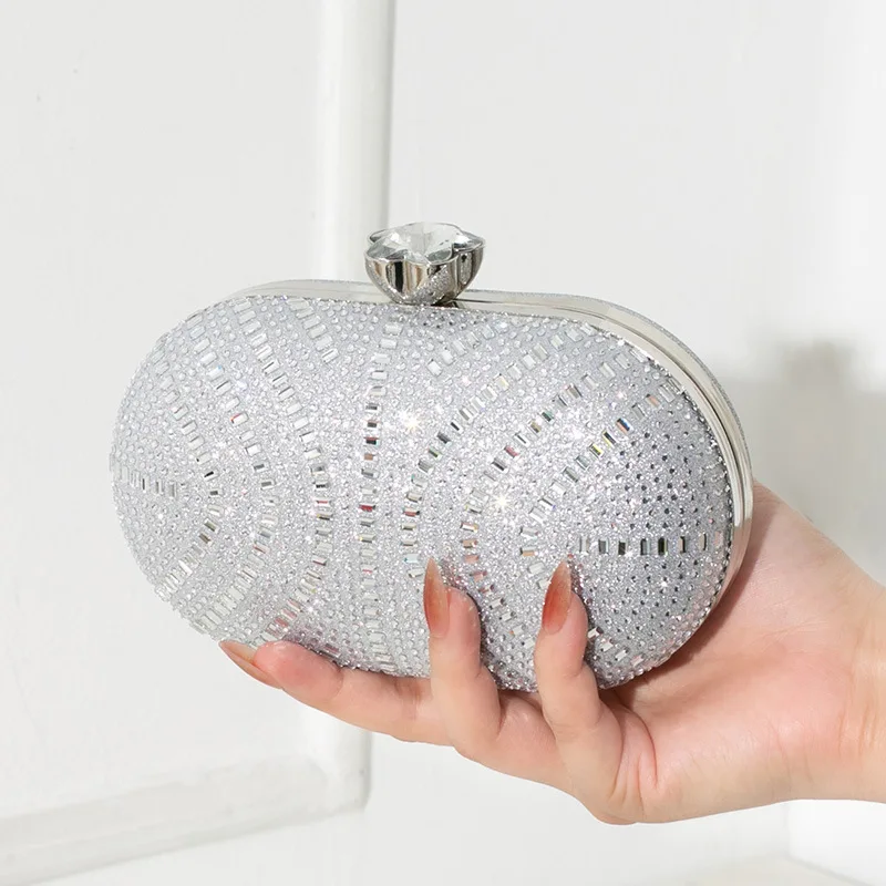 Ladies Wedding Party Dinner Evening Bags Retro Fashion Champagne Silver Small Handbags Fine Rhinestone Inlay Clutch For Women