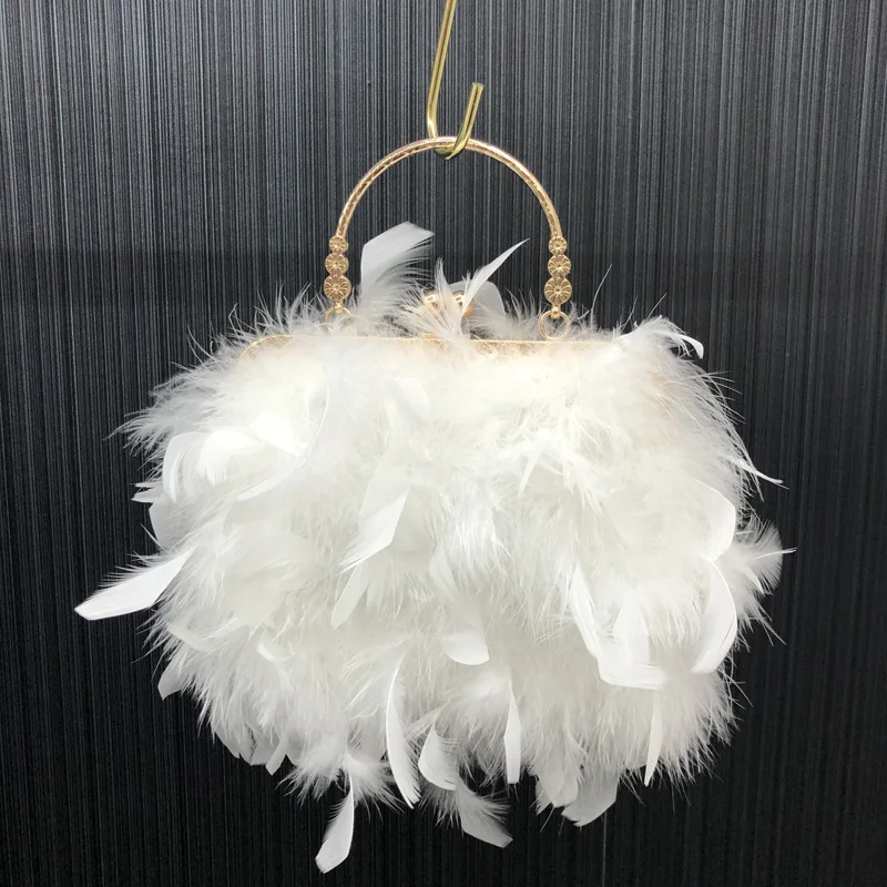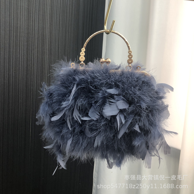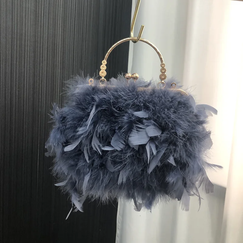 Luxury Ostrich Feather Tassel Evening Bag For Women Autumn Winter Dinner Banquet Clutches Metal Handle Handbags Party Clutch