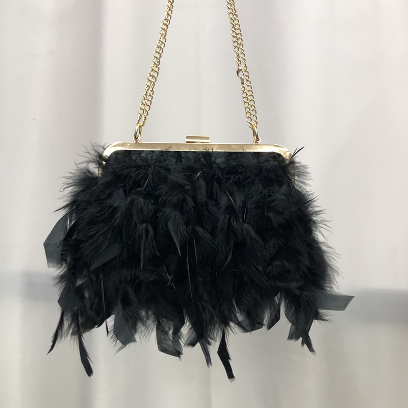 Ostrich Feather Tassel Clutch 2023 Autumn Winter Wedding Party Evening Bags For Women Fashion Luxury Clutches Chain Shoulder Bag