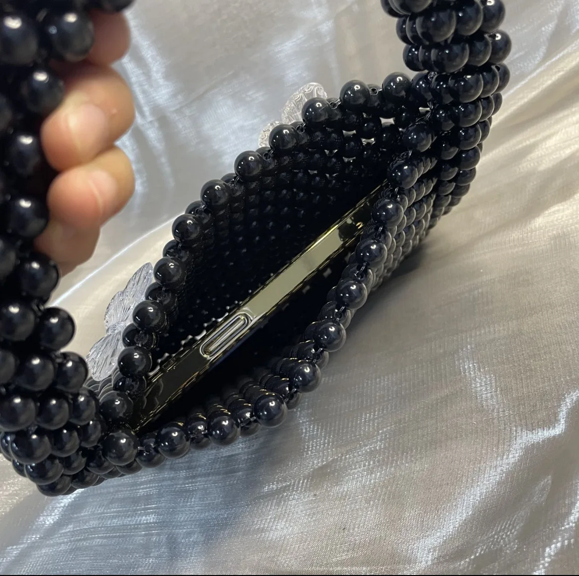 Retro Hand-weave Black Beading Handbag For Women Fashion Fine Fairy Butterfly Decor Tote Handbag Small Clutch Party Femme bolsos