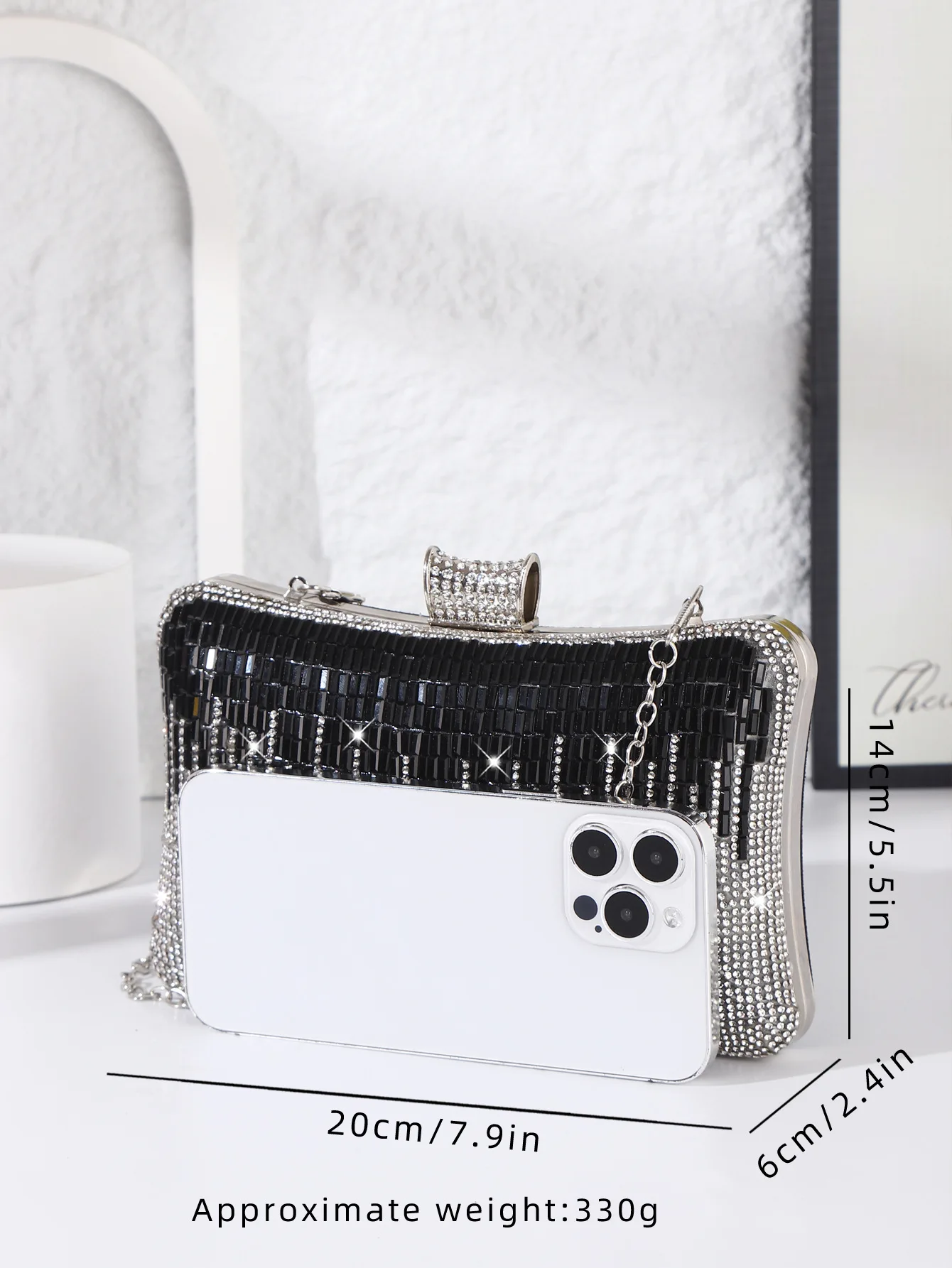 Trendy Luxury Black White Evening Bags Shining Diamond Small Box Clutch For Women Wedding Party Chain Shoulder Bags Prom Handbag