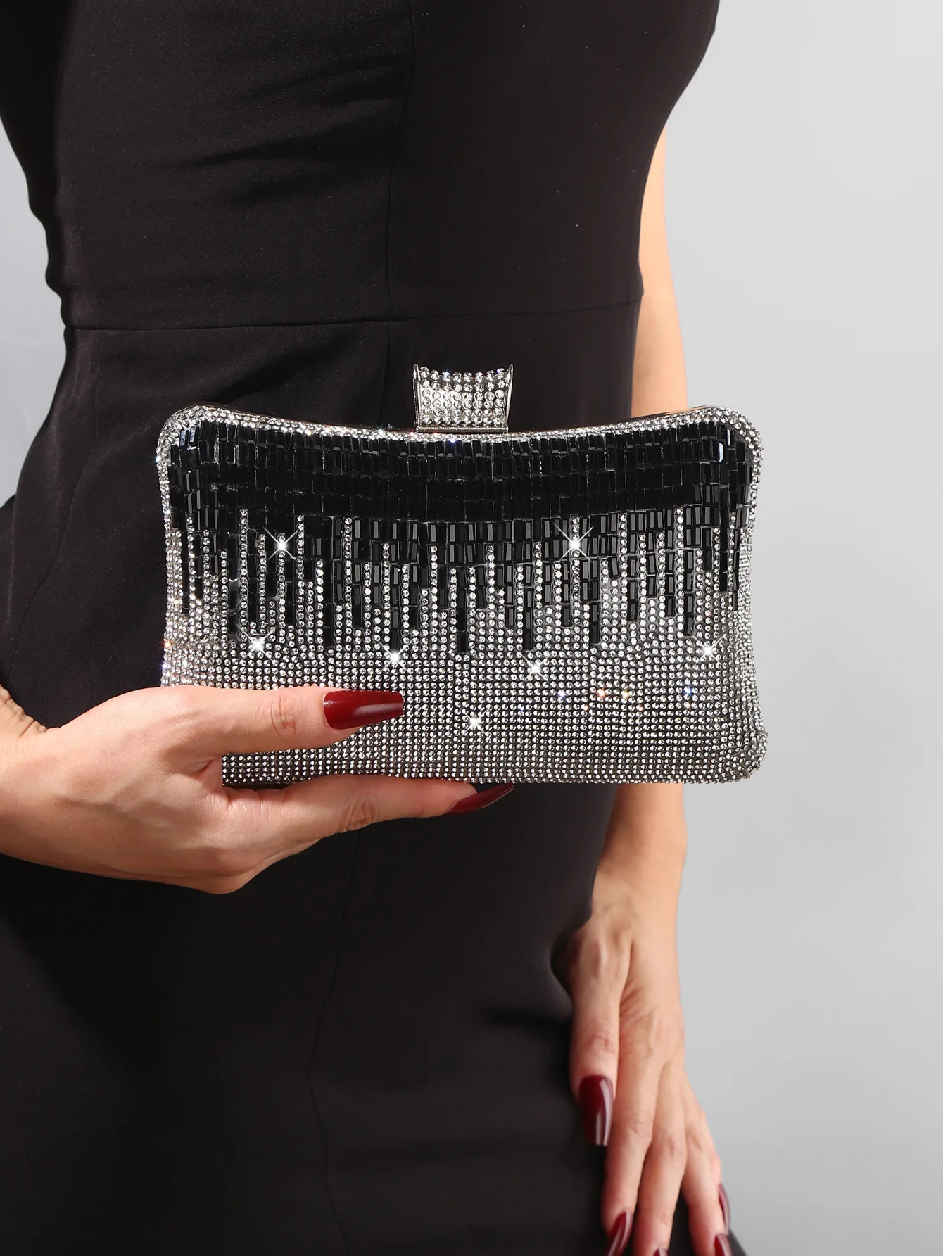 Trendy Luxury Black White Evening Bags Shining Diamond Small Box Clutch For Women Wedding Party Chain Shoulder Bags Prom Handbag
