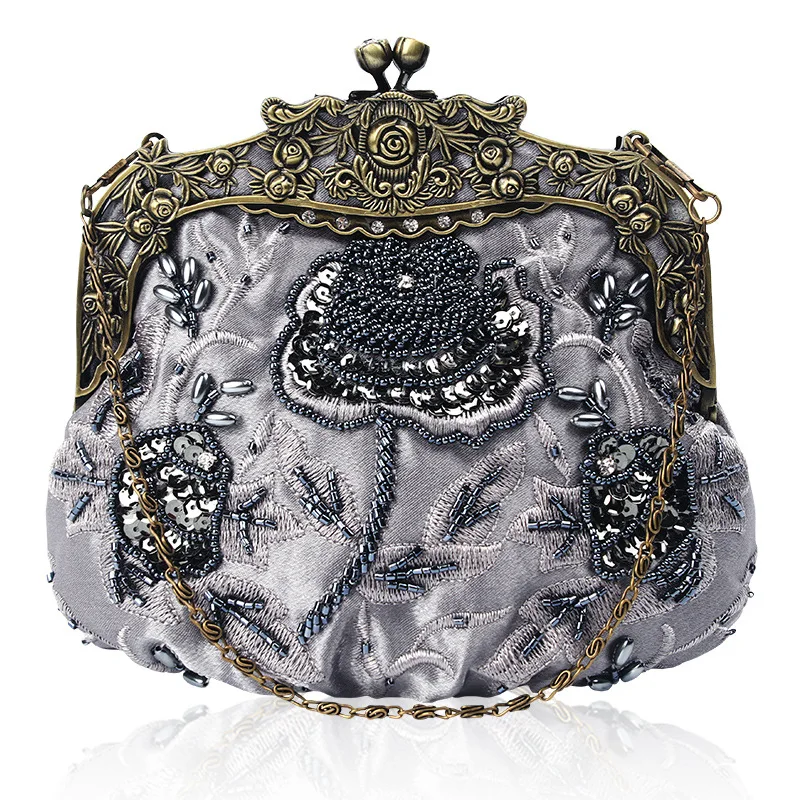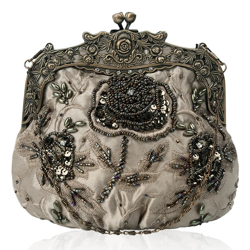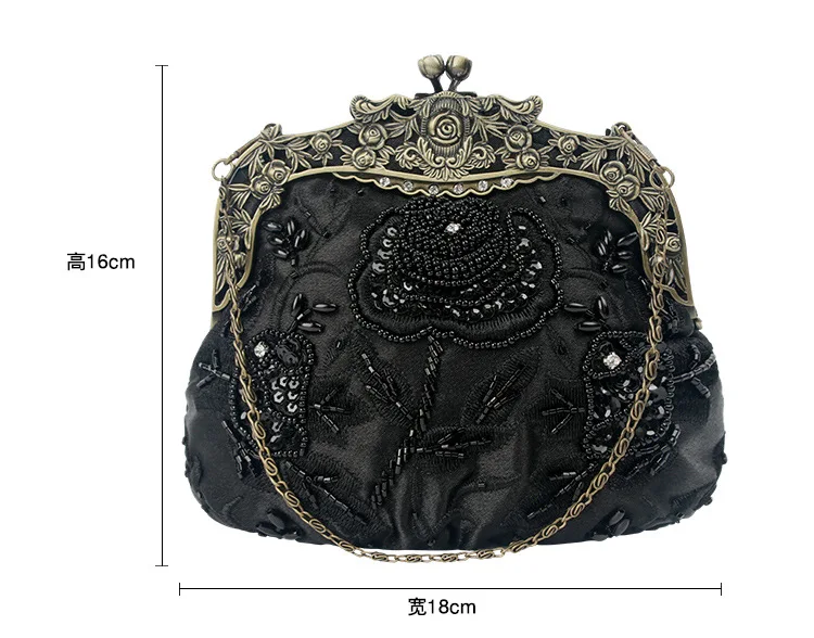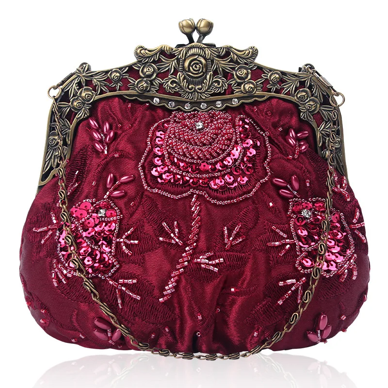 Vintage High-end Women Evening Bag Crossbody Clutch Flower Sequins Beaded Purse Chain Lady Shoulder Party Bag Clutches Handbag