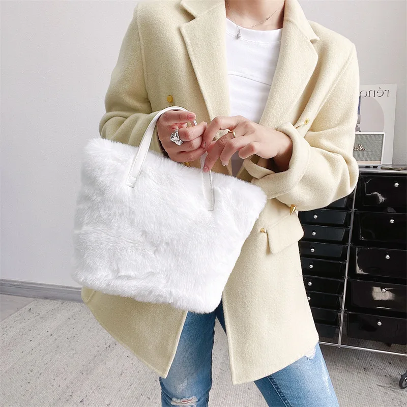 Be the first to review “Winter Faux Fur Plush Tote Bag Fashion Large Capacity Bucket Handbag Shoulder Bag For Women Gray Pink White Daily Shopping Bag”